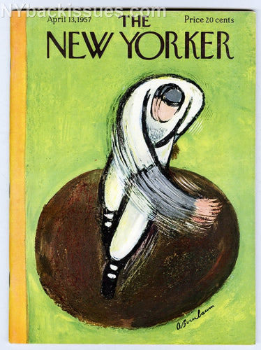 New Yorker magazine April 13 1957 baseball pitcher cover Marianne Moore Niccolo Tucci Otis Burger Clarence Brown VFNM